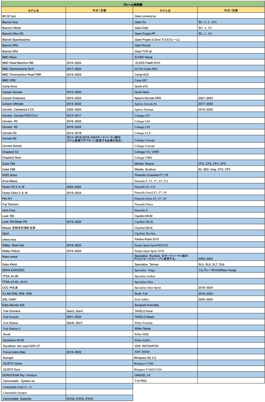 現状、下記の表にある製品においてお取り付けの実績がございます。